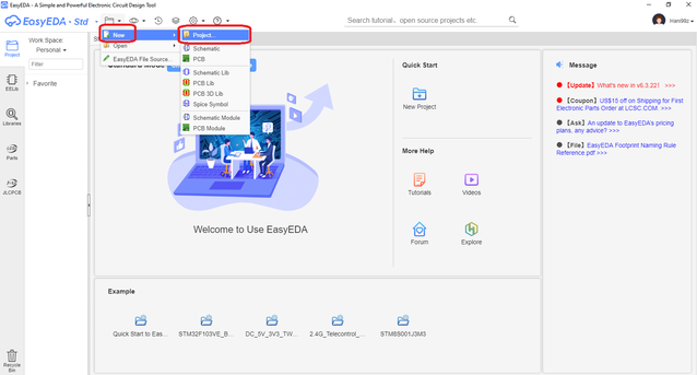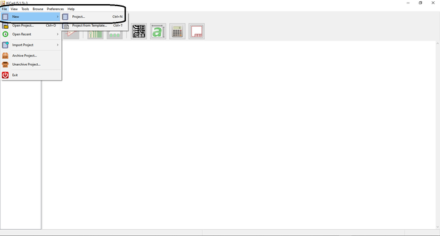 • First you have to download the software Click here and when you open the software you will see this window, you have to create a new project from >> file >> new >> project and here is a look :