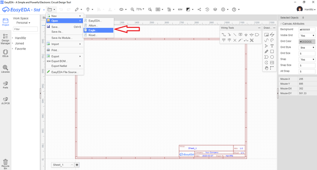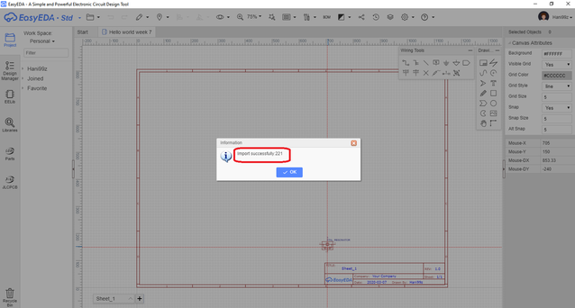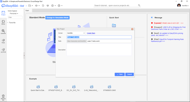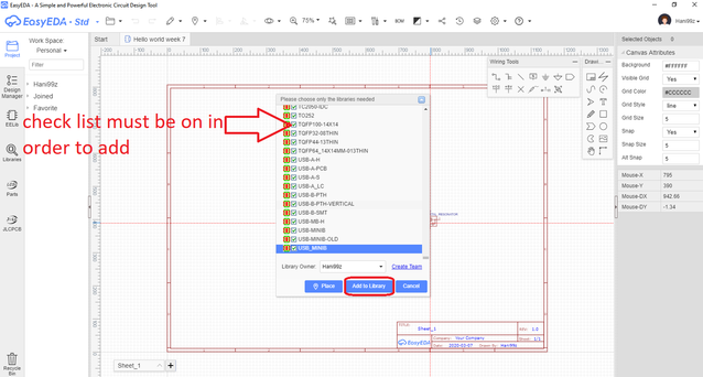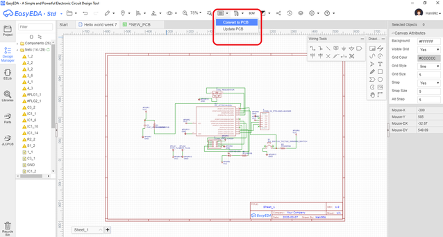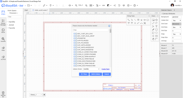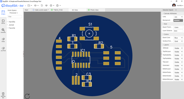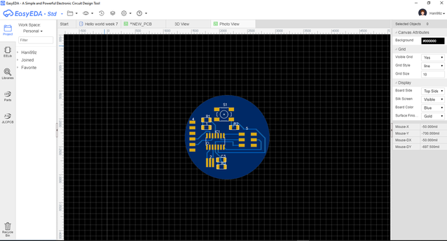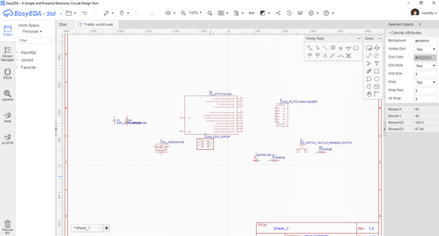 • First i started with EasyEDA because i never used it before and here is the process i went throw while designing “Hello world” board :