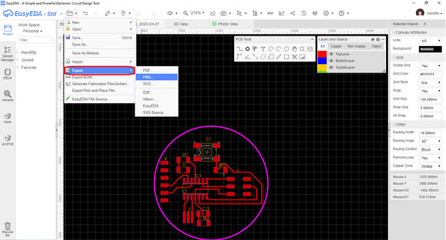 • Here after i have finished wiring and connecting i exported the file as “PNG” by clicking on >>file >> export >> PNG, like this :