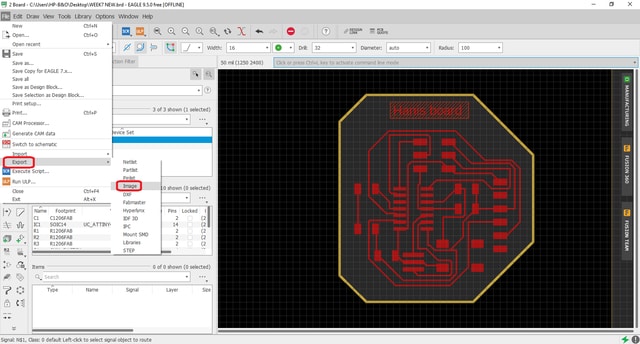 And to complete the assignment i have chosen to cut the board i have designed on eagle