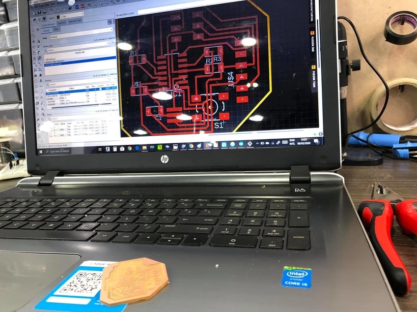 • Before cutting you have to go back to week 4 in order to know all the safety rules and the right milling bits used in cutting the traces and the interior, also to know how to use mods and how to put the right settings for the machine .