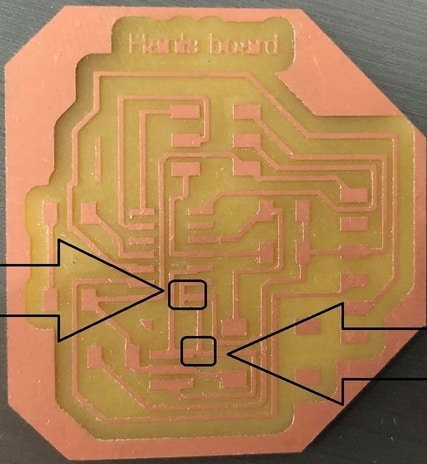 • the reason of this short circuit goes back to board design which seems that the traces are really close that the milling bit did not cut .
