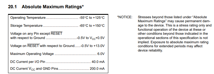 - Now after i have read about the pin description i have to know about the maximum ratings :