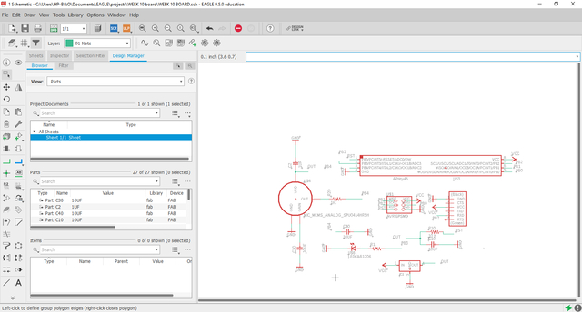 - Now the process is easy i just had to go back to the schematic of the design to see which pins i have to connect the ultrasonic sensor to and here is the schematic also Click here if you want to see the whole process of designing my board