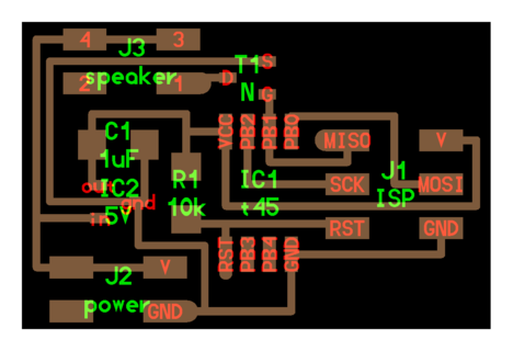 For the individual assignment i have to add an output device to a microcontroller board i’ve designed, and program it to do something, to start i have to decide what which ourput device i am going to use and after thinking i am going to use the speaker, stepper motor and a servo motor for this week as a step closer to my final project and to do that i am going to design each board using EAGLE, so in order to start i am going to design a board for the microphone and a board for the stepper motor also a board for the servo motor and then a FABduino to connect all the boards with my FABduino, i will start designing board by board but first i want to use My ‘Hello board’ which i have programmed in the previous week to connect it with a buzzer just to illustrate the idea of an output, Lets start !!
