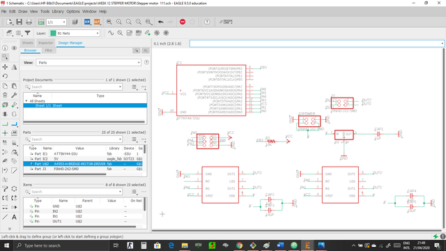 Here you can see that i have completed the schematics for my design on EAGLE and added all the parts i need :