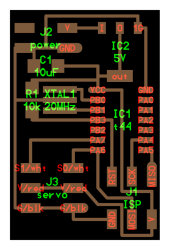 - I have tested the servo motor board and it didnt work for attiny44 so i have designed a new board using attiny45 and it worked perfectly
