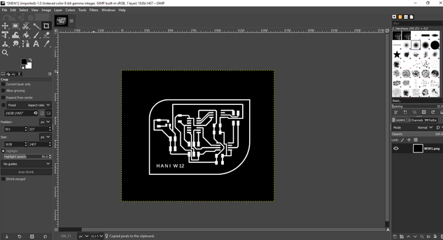 - Now i exported my design and edited it using gimp in order to get the traces and the interior “outline” :