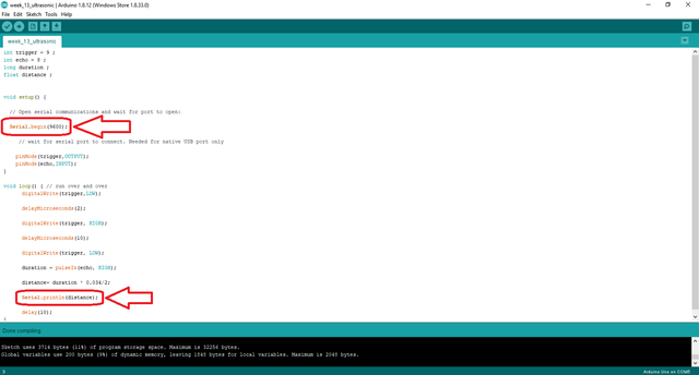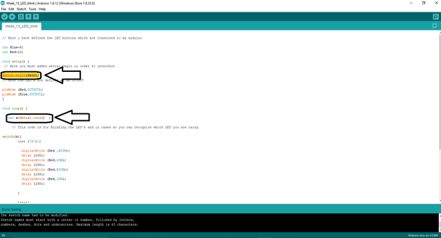 Now the code in arduino is not like every code we write but if you want this code to be interfaced with you must added the “Serial communication” in between and to do that just added “Serial begin (9600)” you must keep in mind that the number “9600” is the baud number which can be different from one controller to another and now i will make stuff easier by showing you exactly what i mean .
