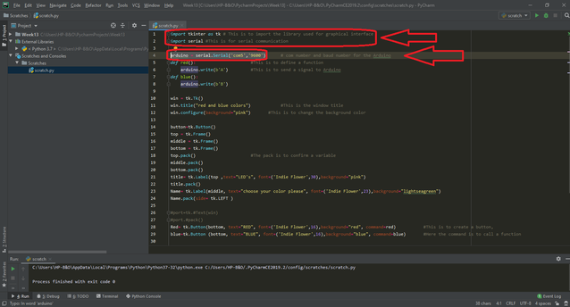 - Here you can see that you also have to added the “Port number”, “Baud number” and the “serial begin” in python :