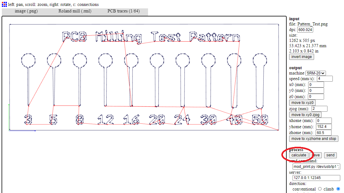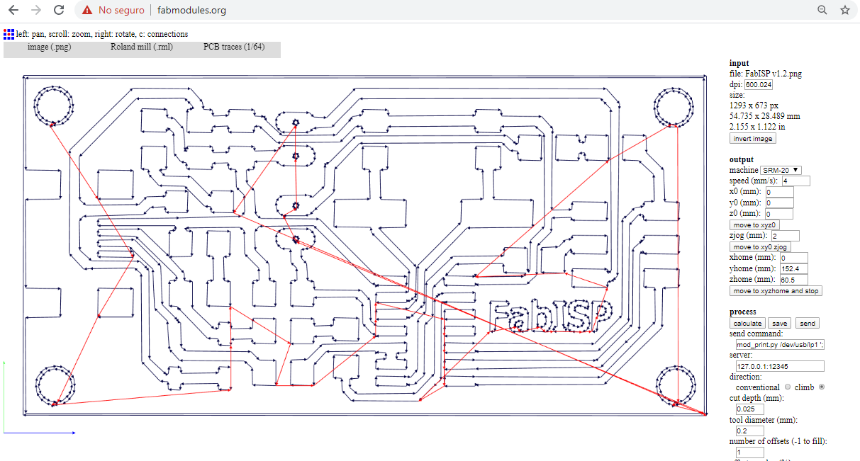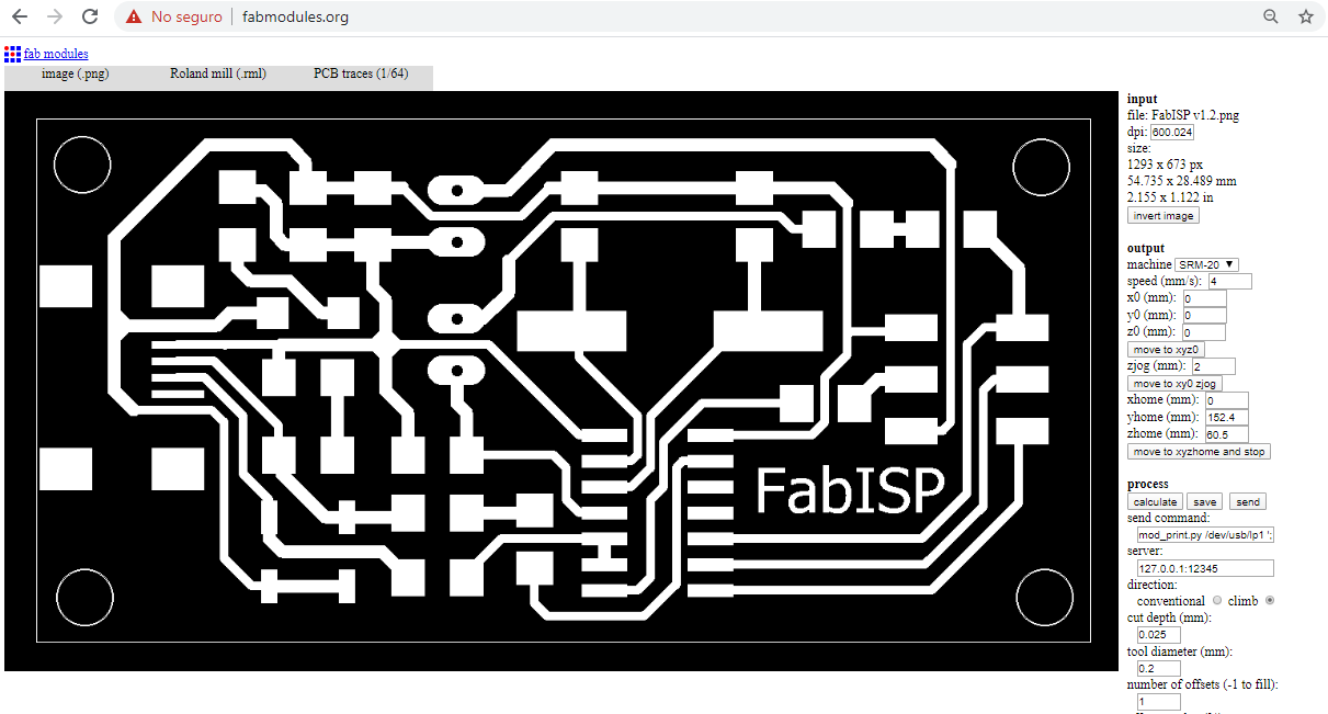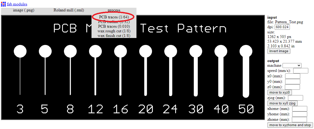 Afterwards, I choose the process to PCB traces (1/64) because it is the format to MONOFAB machine: