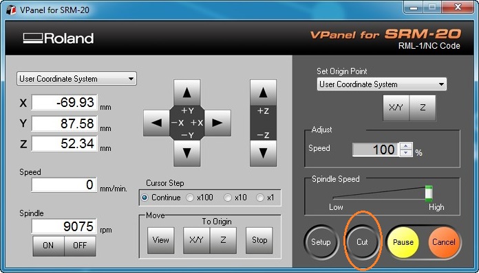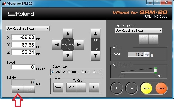 Open the VPanel Software, it control the Monofab SRM-20 machine: