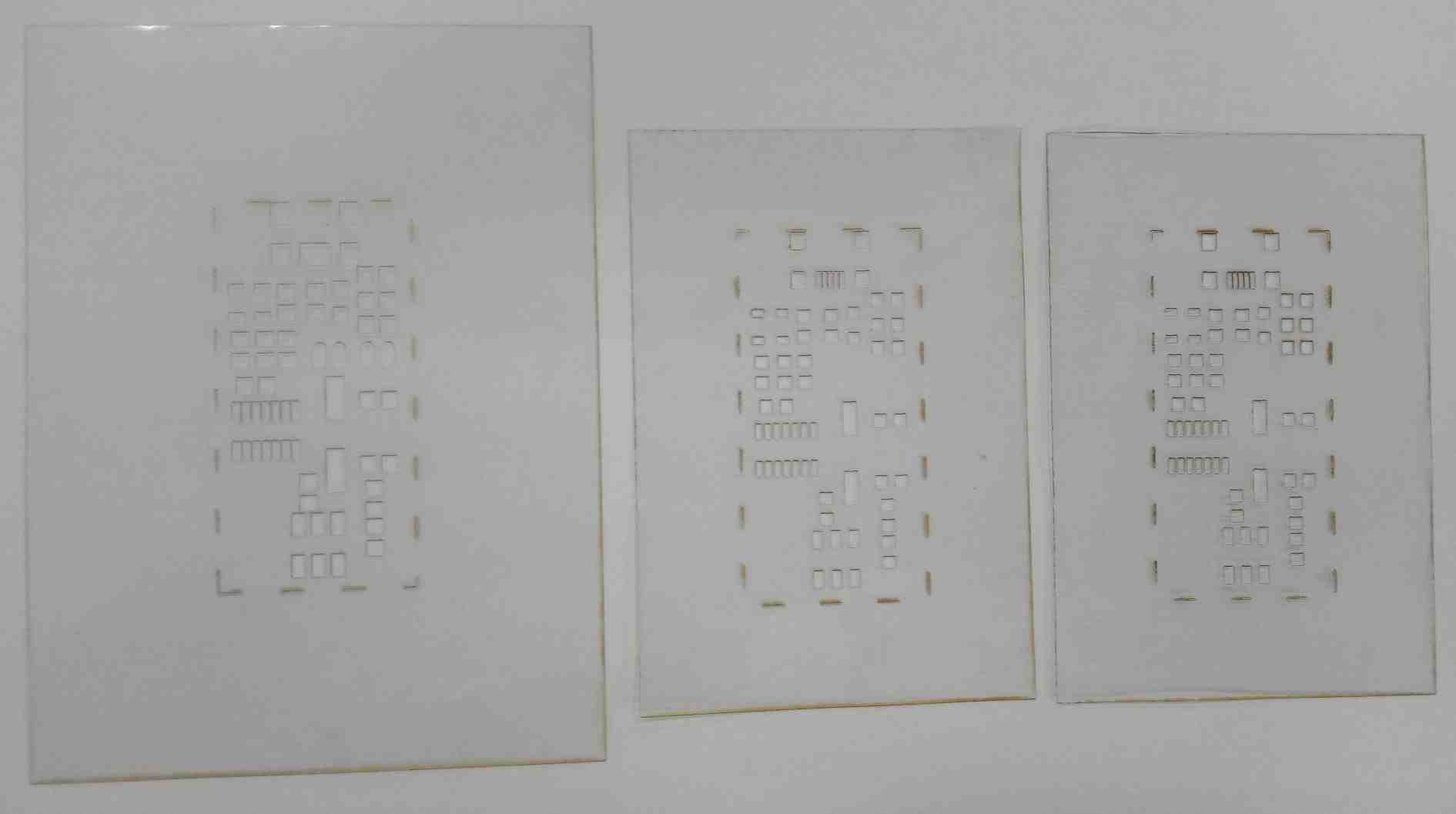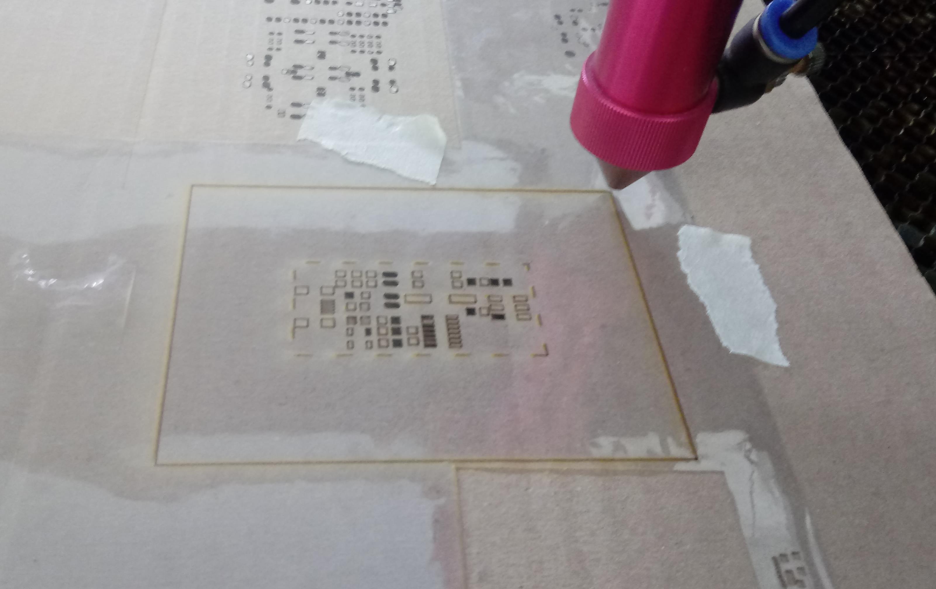 I cut the antisolder mask in CO2 laser cuttin machine in transparent stencil: