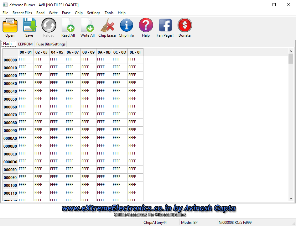 When The Extreme Burner Software is loaded, I choose in Chip->Attiny44; it is to work with this micontroller: