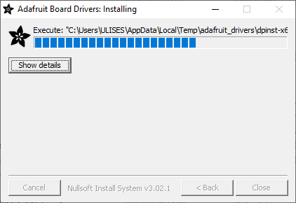 I can download the official driver in https://github.com/adafruit/Adafruit_Windows_Drivers/releases and I can install manually:
