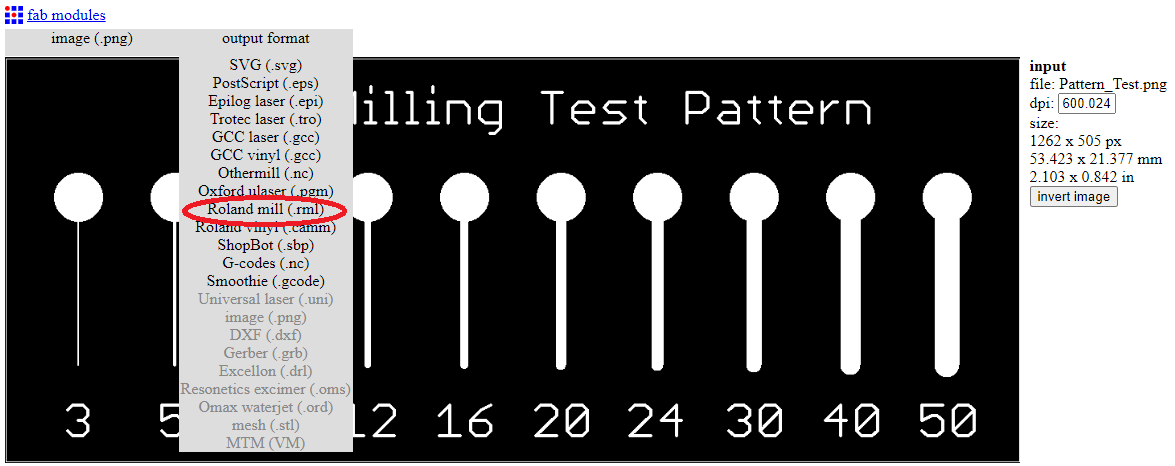 Now, I choose the output format to ROLAND MILL because I use the MONOFAB SRM-20 from ROLAND company: