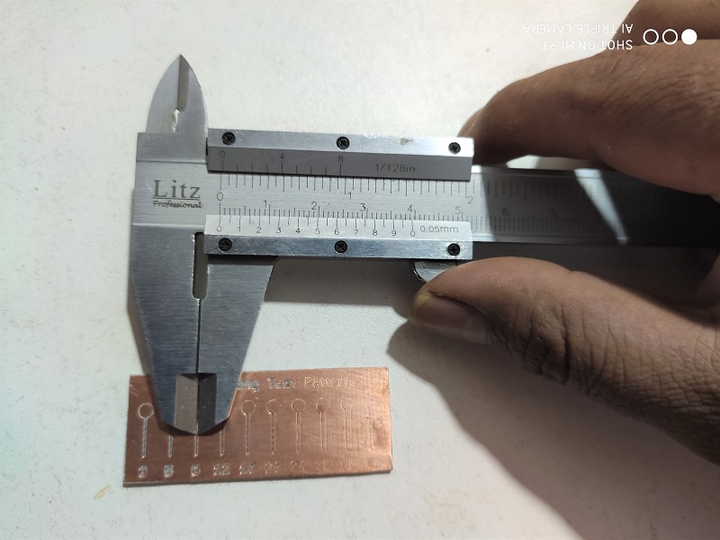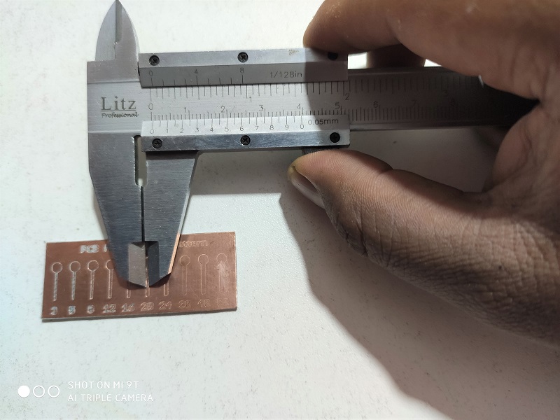We test the copper tracks that were cut to make a comparison with the size it should have: