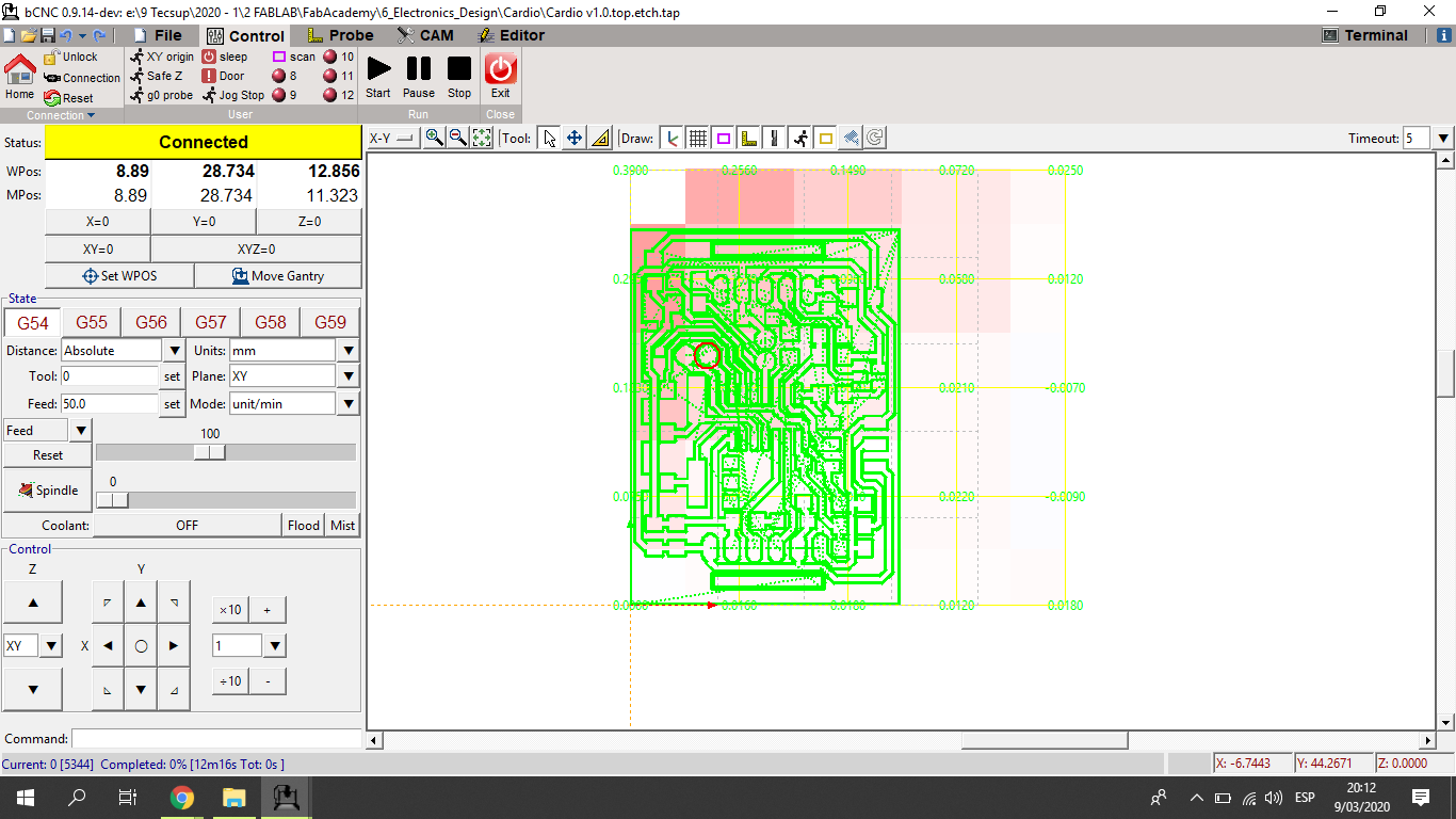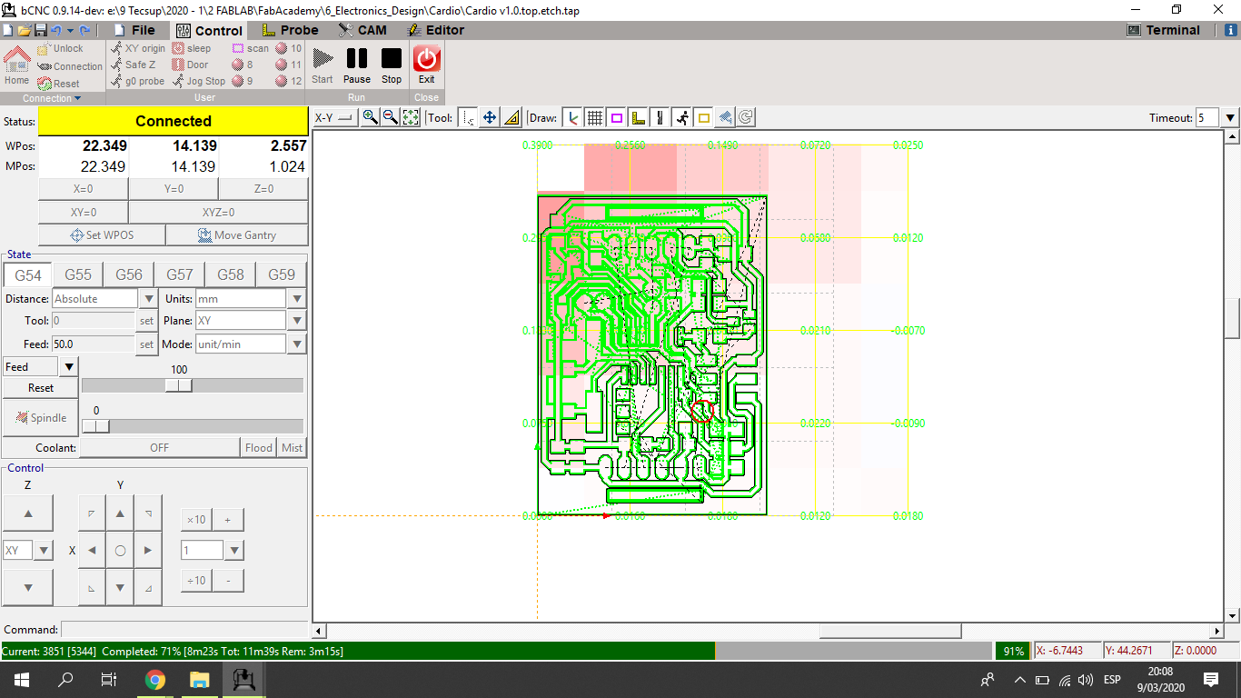 Open the gcode file in bCNC software to work with the CNC with grbl firmware: