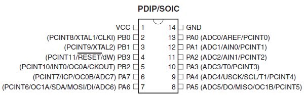 Also I check the pinout of the Attiny44A in Arduino IDE to proagram: