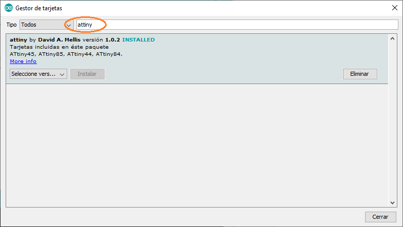 Install the libraries to compile the Attiny44 in ARDUINO IDE: