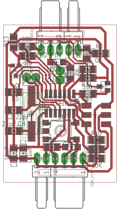 - Redraw an echo hello-world board, add (at least) a button and LED (with current-limiting resistor) check the design rules, make it, and test it