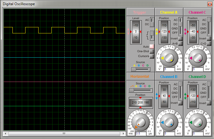 I colocate a Digital Oscilloscope in the schematic to view the output signal