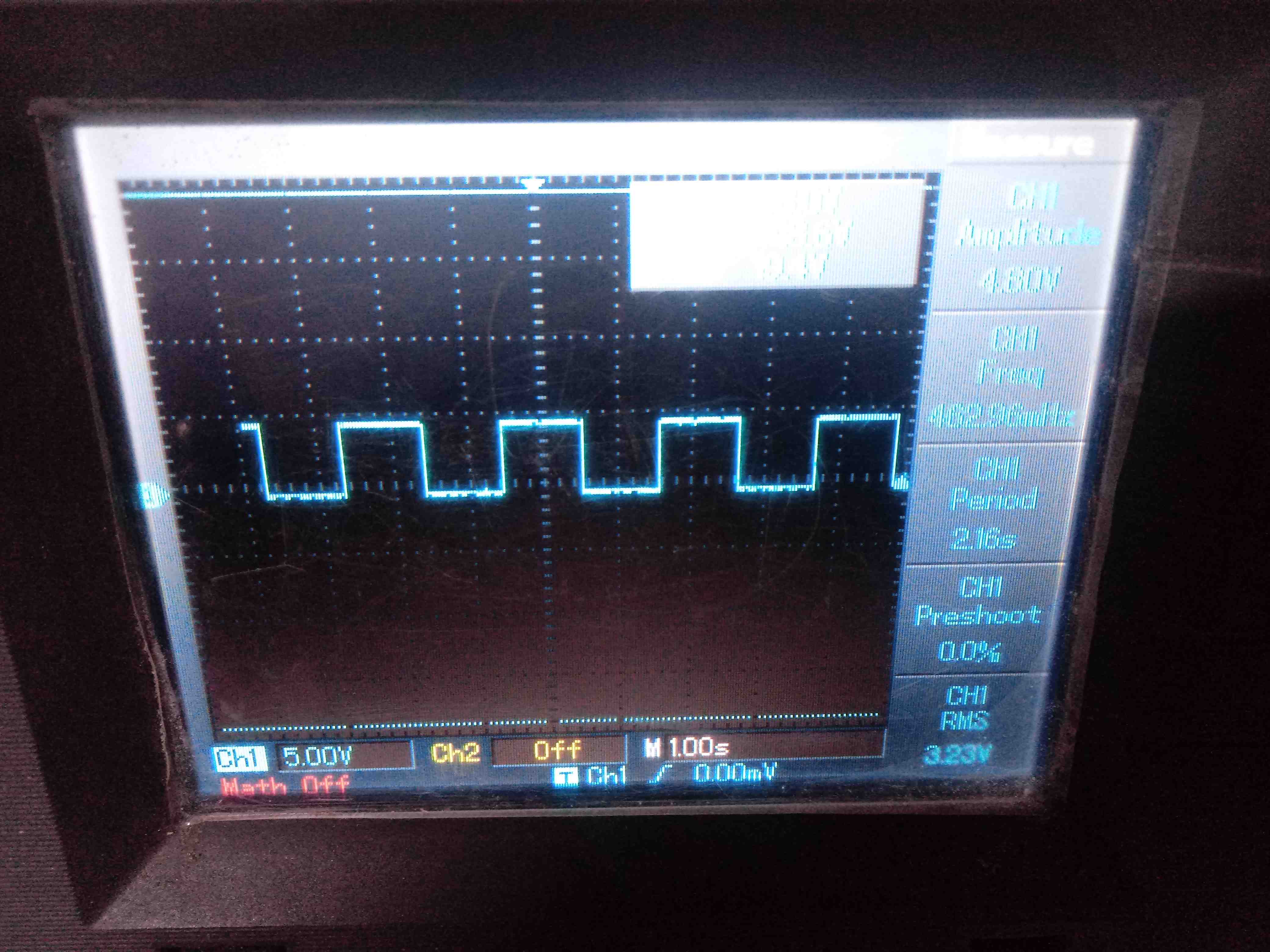 I use the ATTINY44A microcontroller, I probe the 10 pin of the microcontroller, it is programmed with the blink led with the pin 10, also it has a led in this pin.