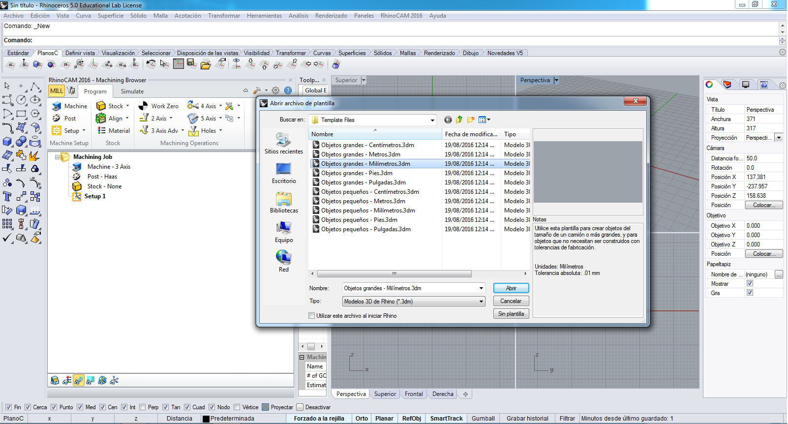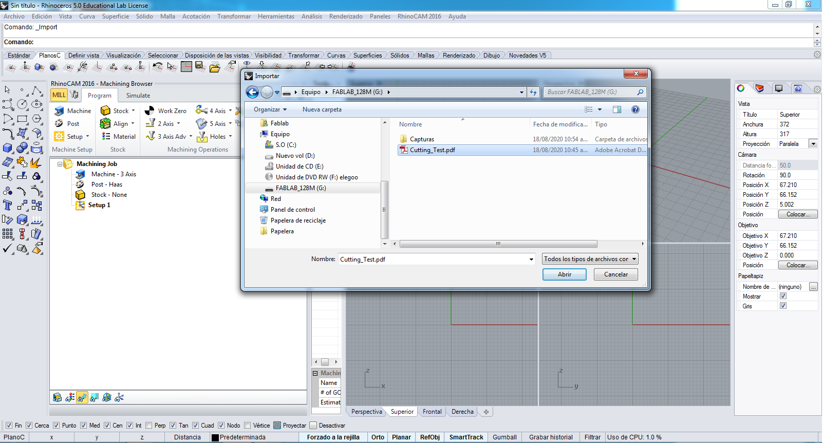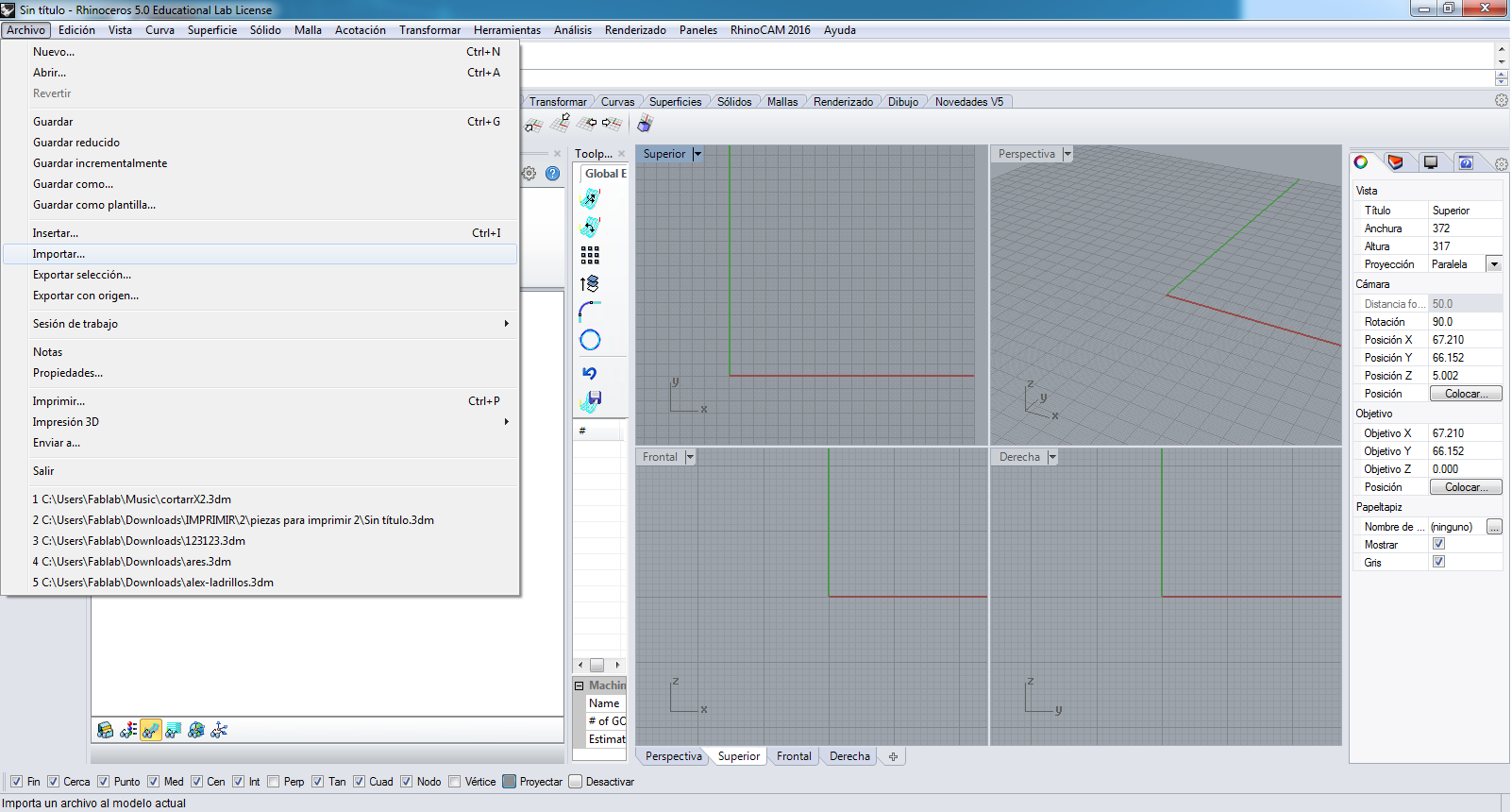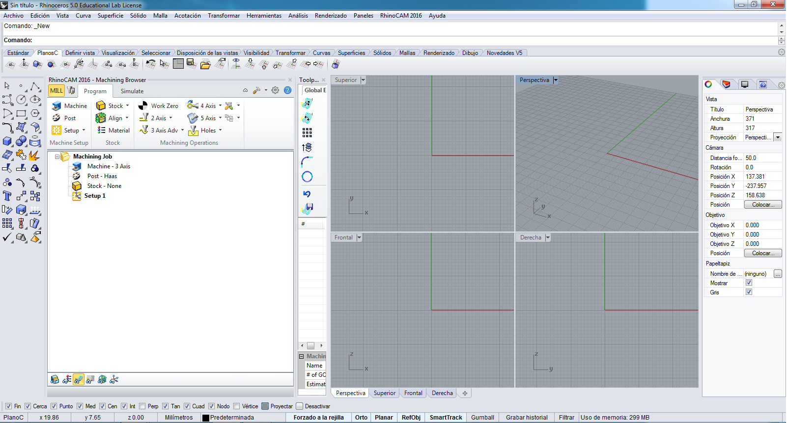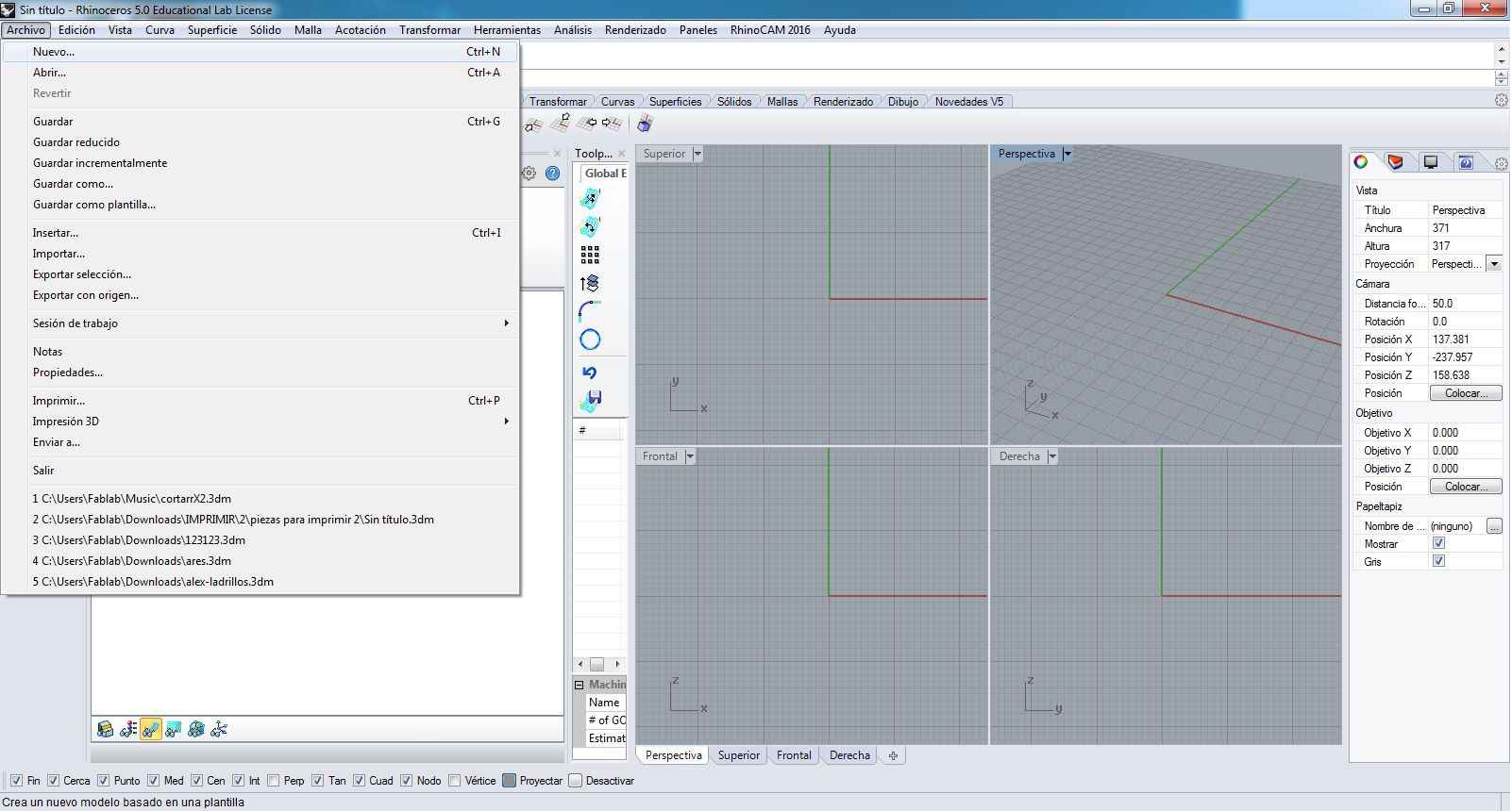 In fablab We have the RhinoCAM to work with the SUDA VG1325 machine, I open the software and create a new design: