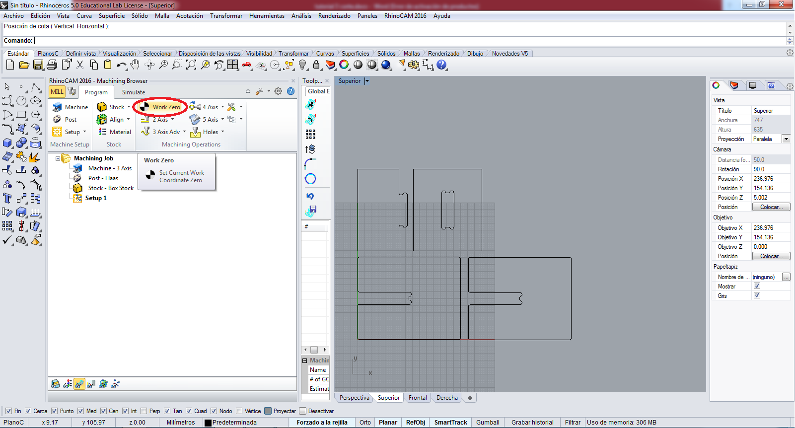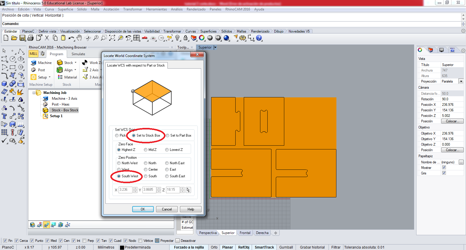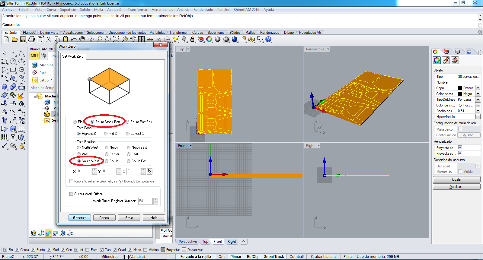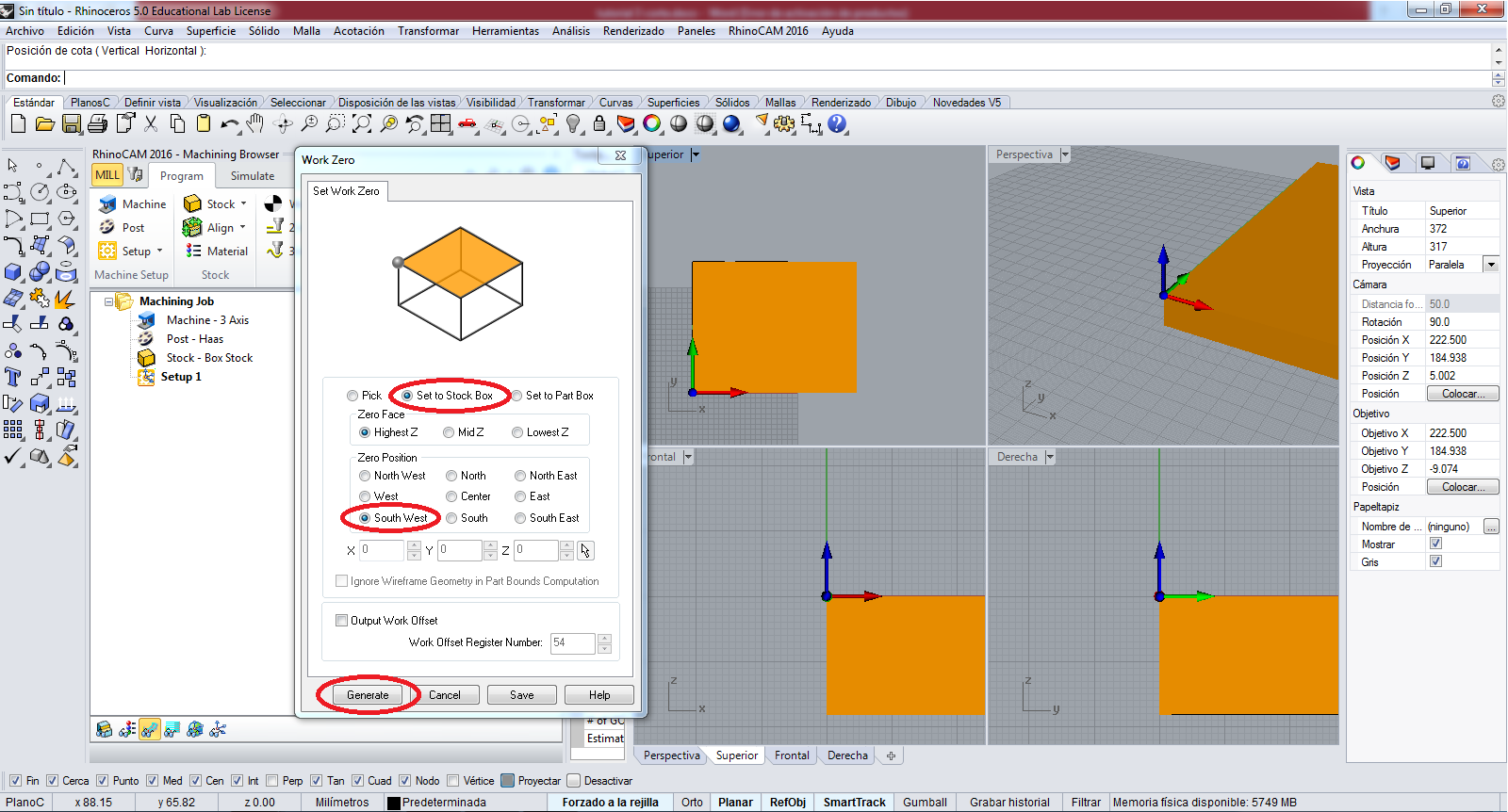 For Work Zero I choose the Set to work Box and South West options to set and I click in Generate button: