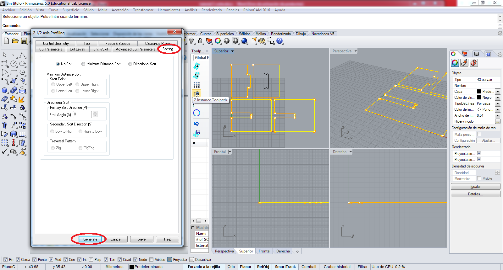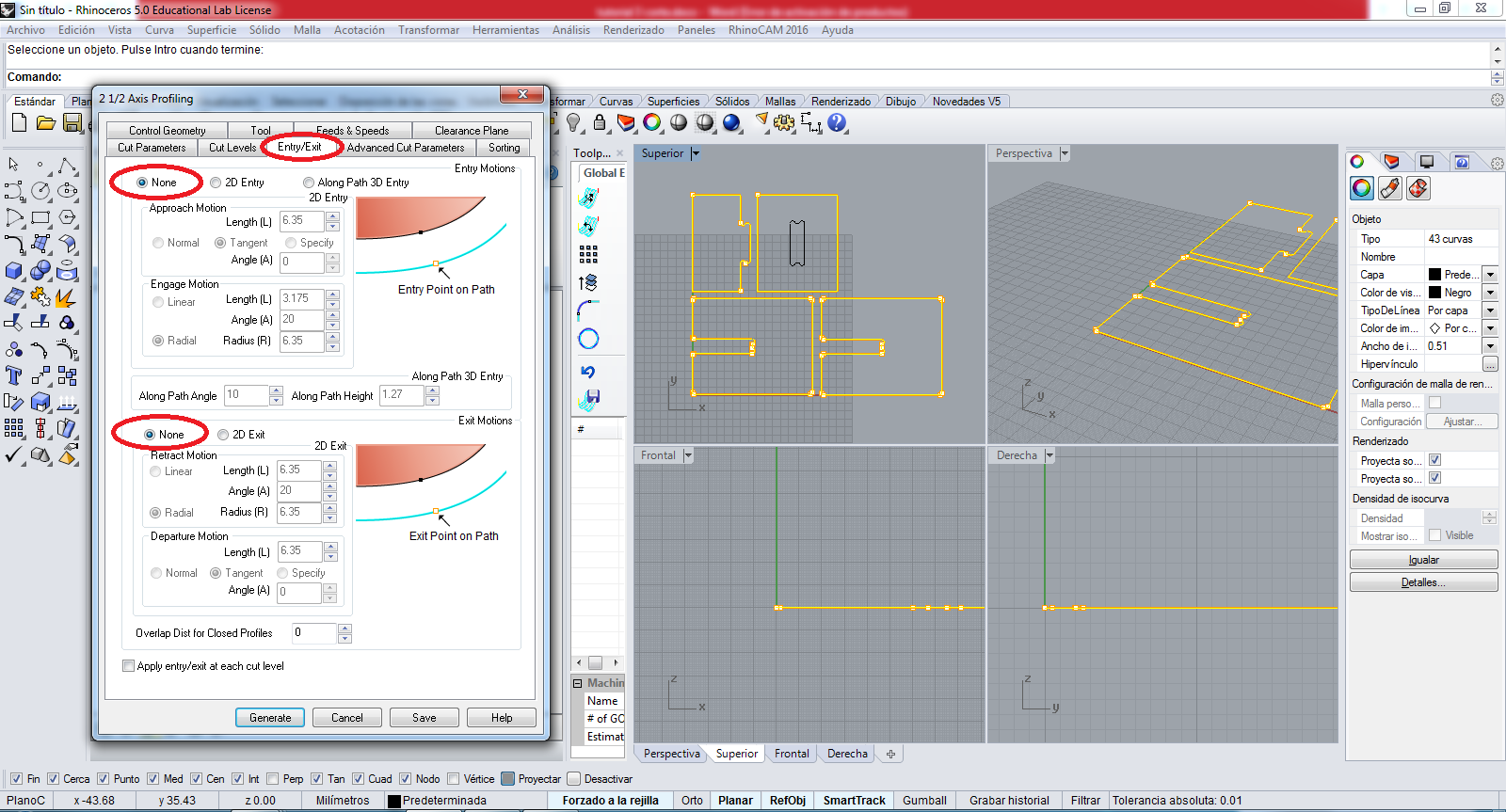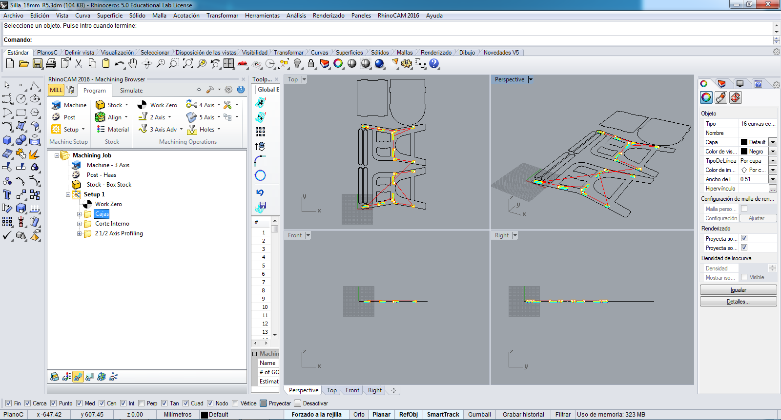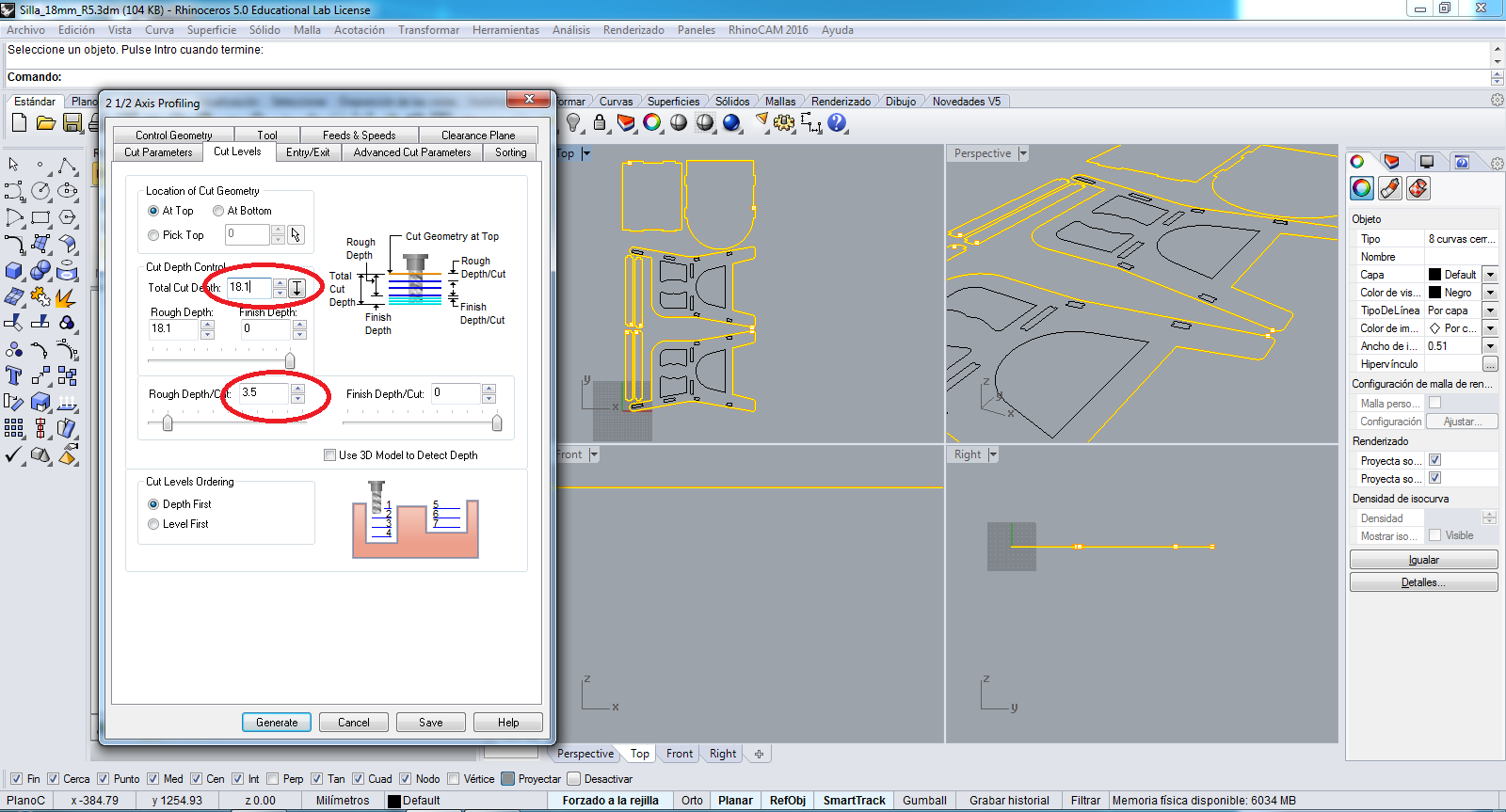 Now we are ready to generate the works, first I create the cutting work; I select in 2 Axis button the Profiling option: