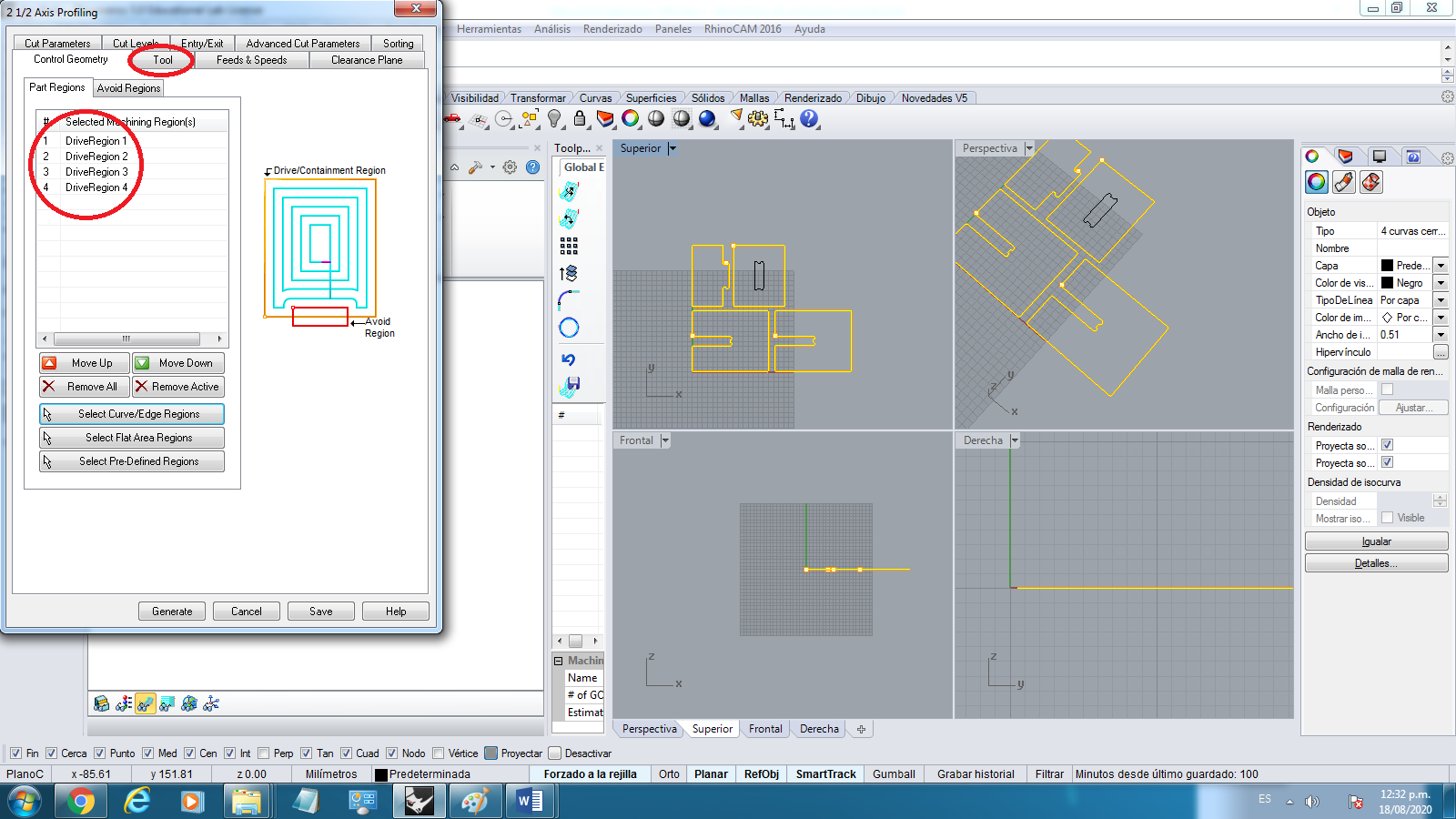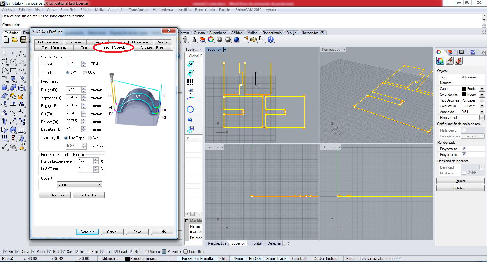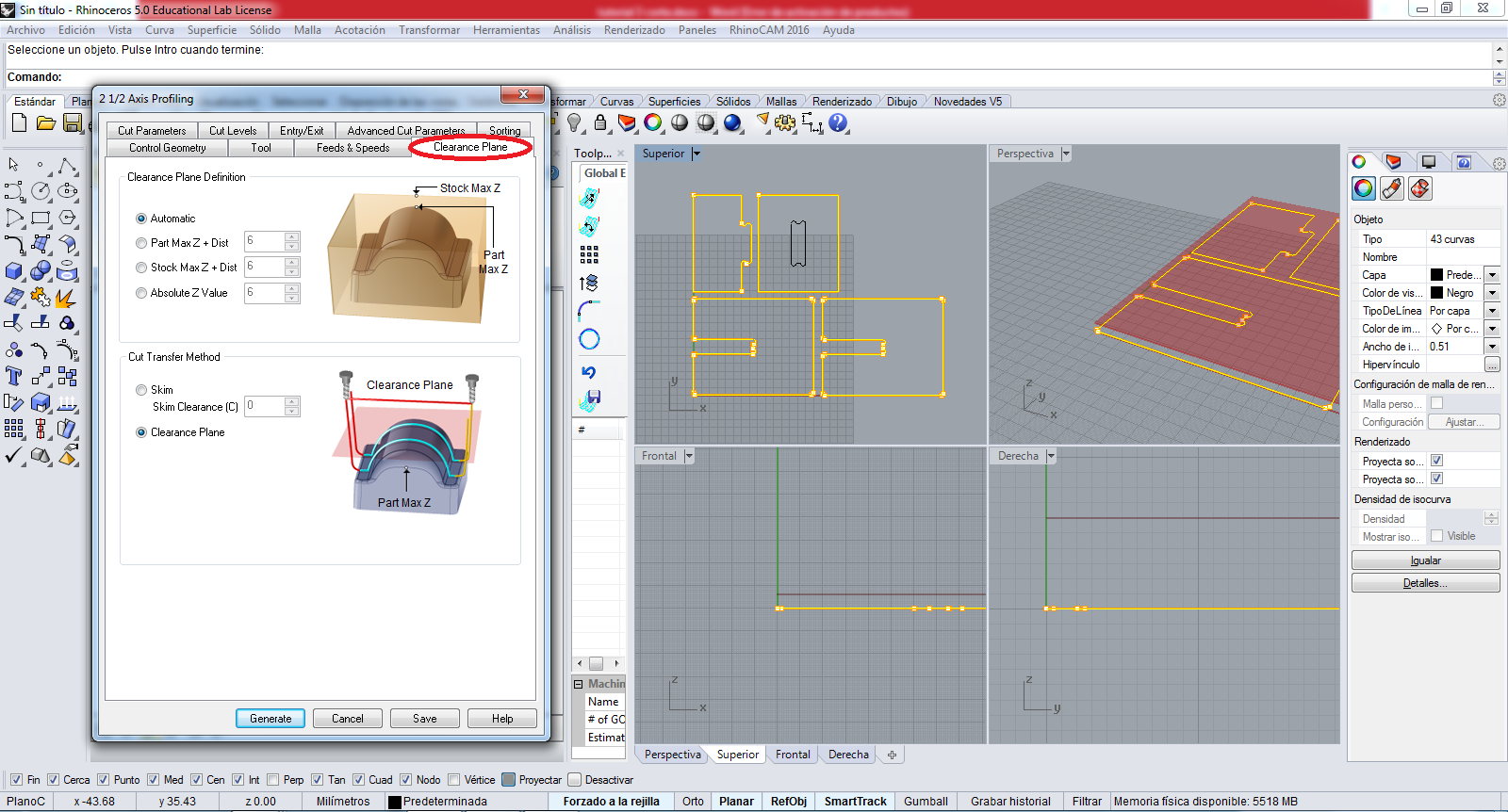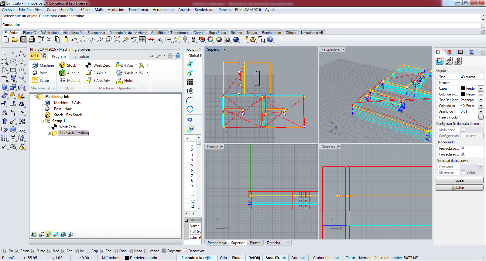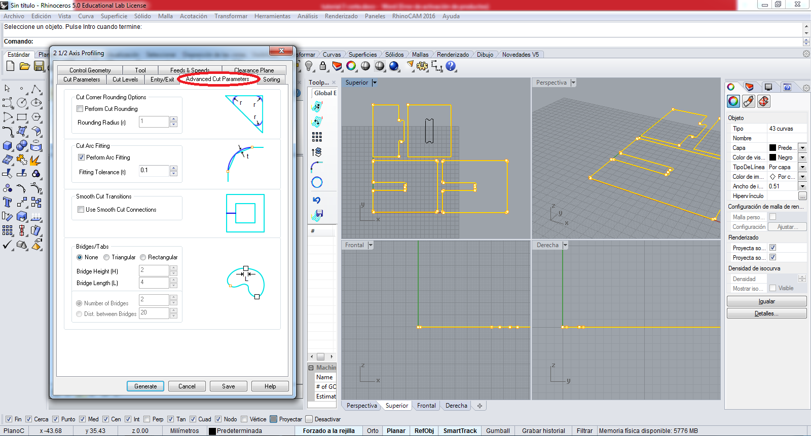 Now we are ready to generate the works, first I create the cutting work; I select in 2 Axis button the Profiling option: