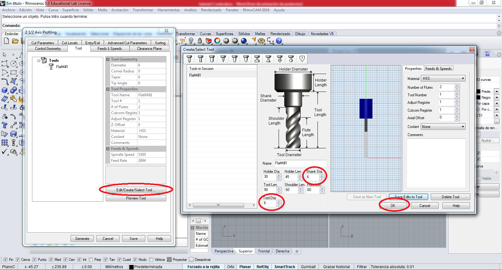 In the tool tab, I can edit the cutting tool, we can see in the image: