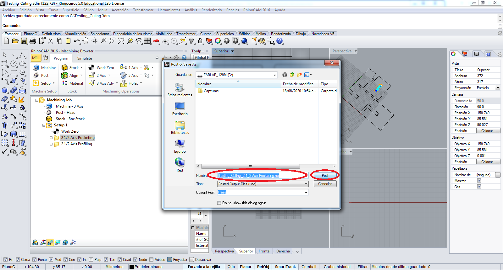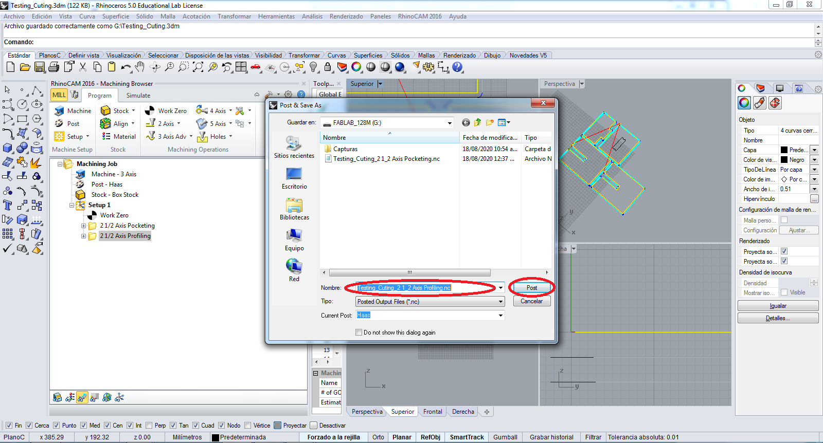 Afterwards, I post the NC file to convert the JG file, and the JG file must send to VG1325 machine to cut.
