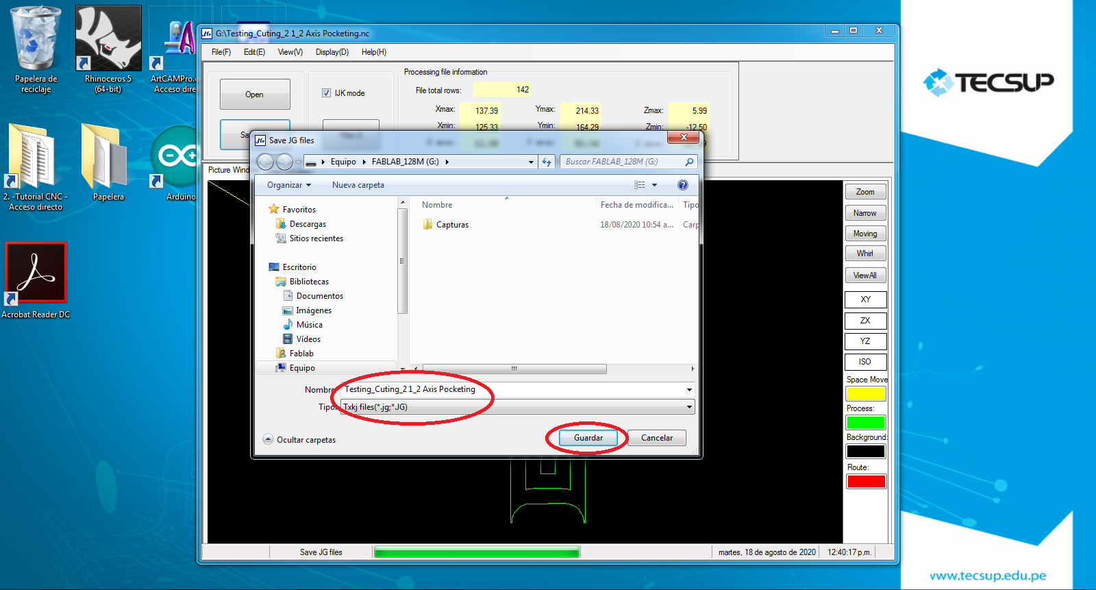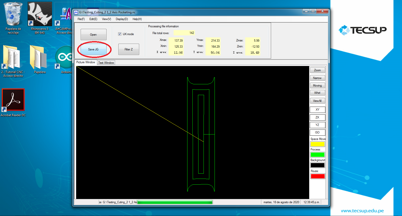 Afterwards, I convert the GCODE file to JG file that is the file used to VG1325 Machine: