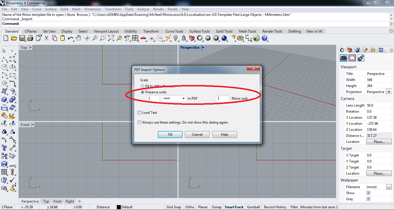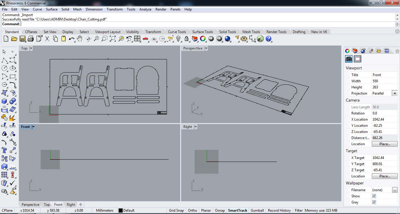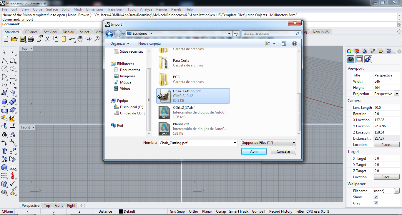 So, I import to Rhinoceros 5.0 the PDF file of before steps