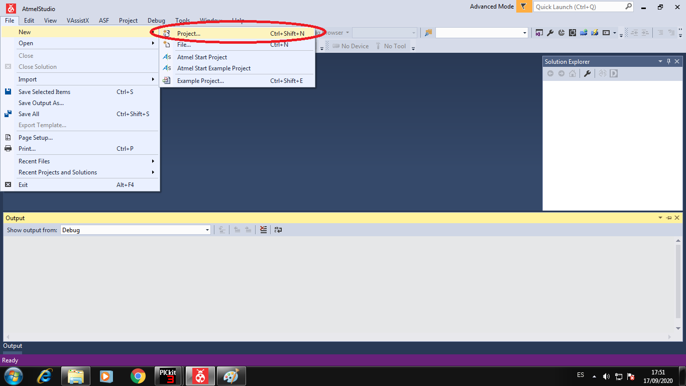 After we create the project we can program in C++ with libraries from AVR microcontrollers, it is insatalled in Native software Atmel Studio.