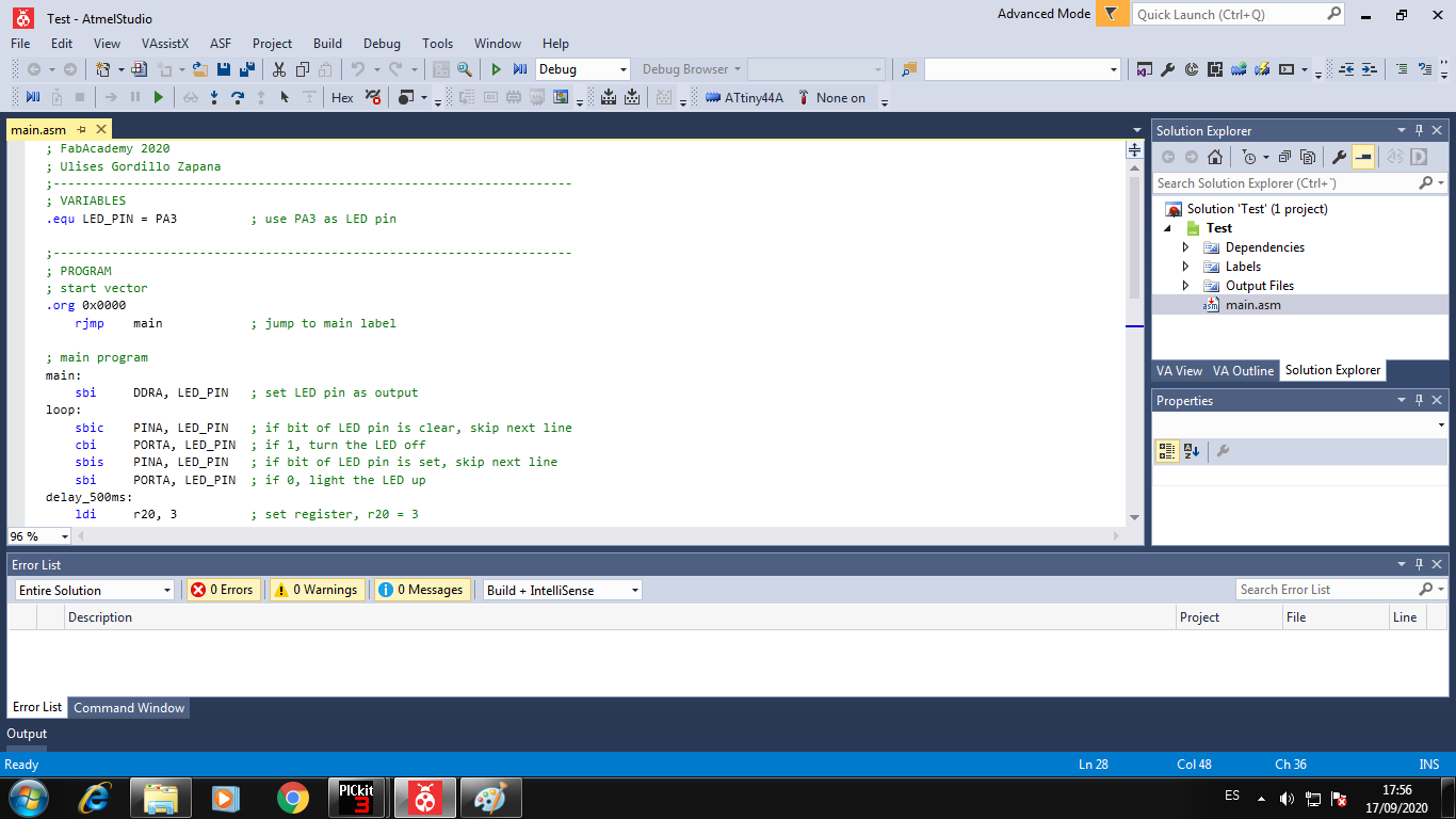 This week I analize the response of the ATTINY44A with Asembler, C++ Native and Arduino IDE.