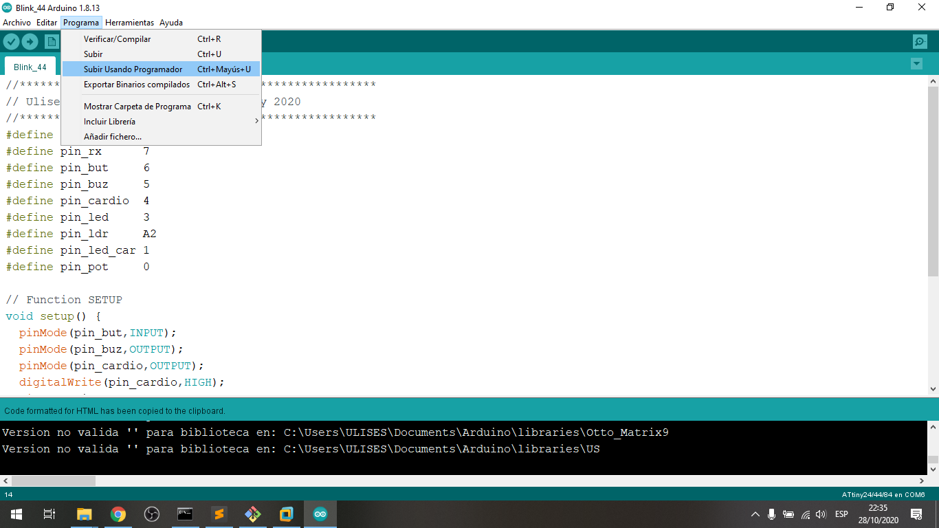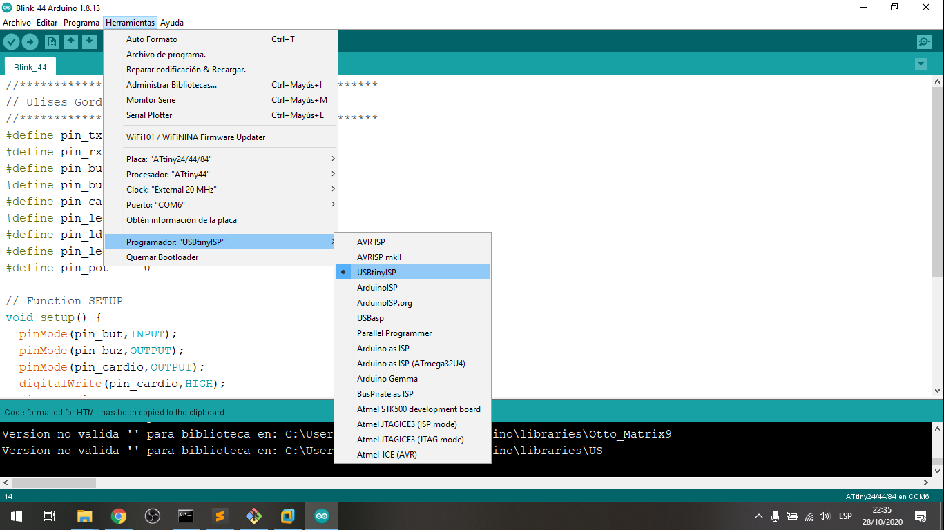 And Finally the microcontroller was programmed with Arduino IDE and USBtinyISP:
