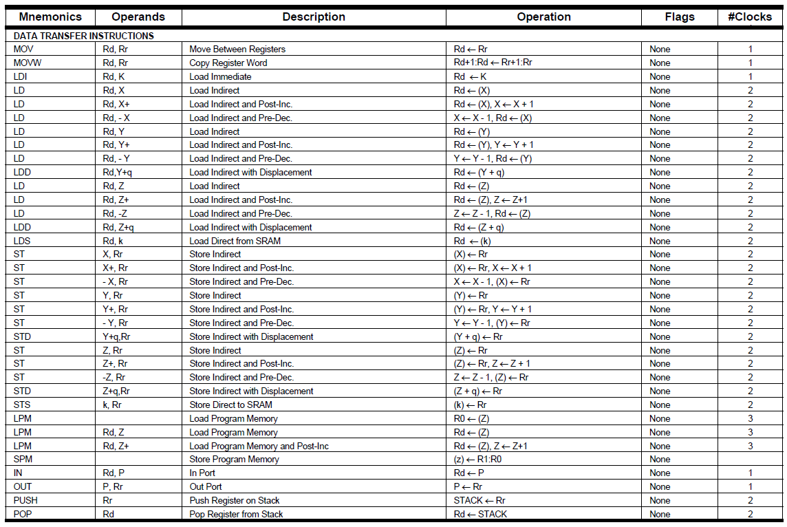 Also the microcontroller has DATA TRANSFER INSTRUCTIONS: