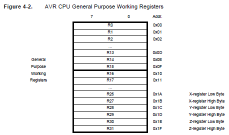 In the figure 4-2 we can see the list of working registers from R0 to R31: