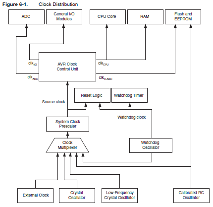 In the Figure 6-1 we can see the Clock Distribution to work the internal resources: