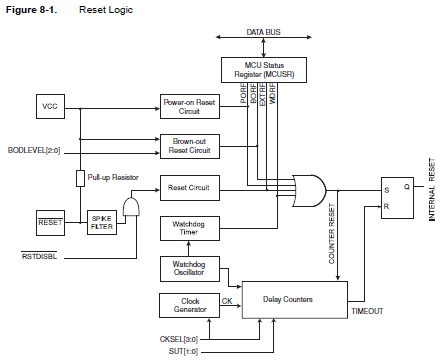 In the Figure 8-1 we can see the Reset Logic to work the internal resources: