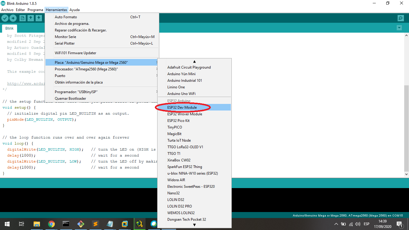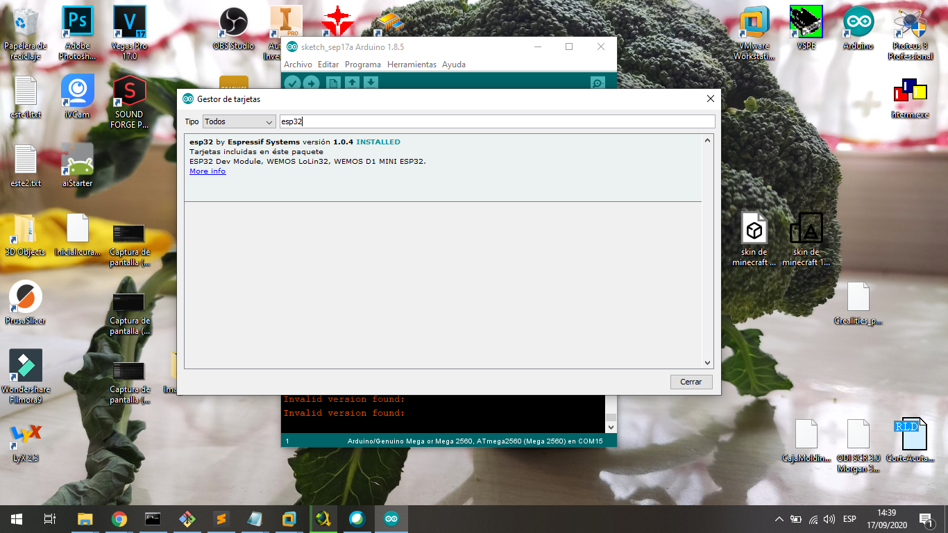 I choose the esp32 by Espressif Systems and install this tools to work with the boord: