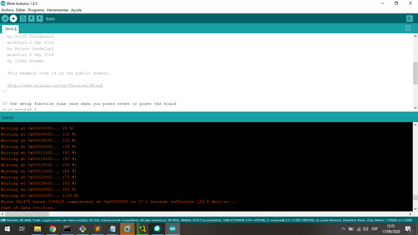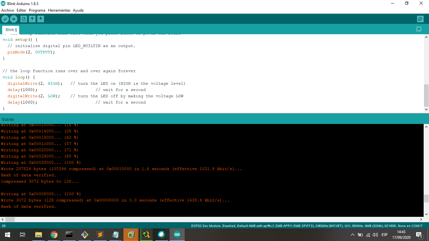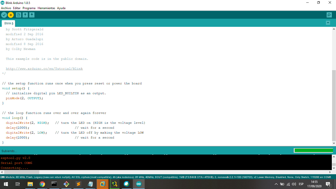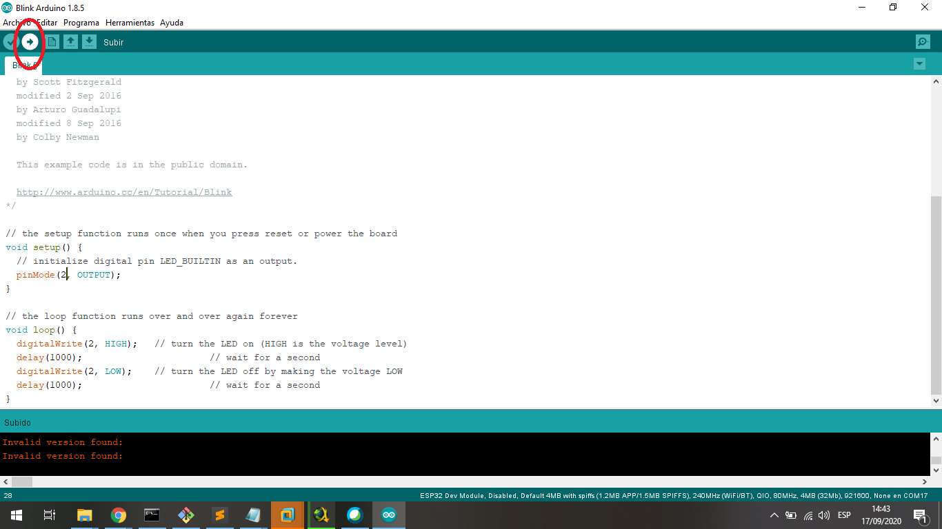 Open the blink example and change the ledblinking variable to 2 pin to board: