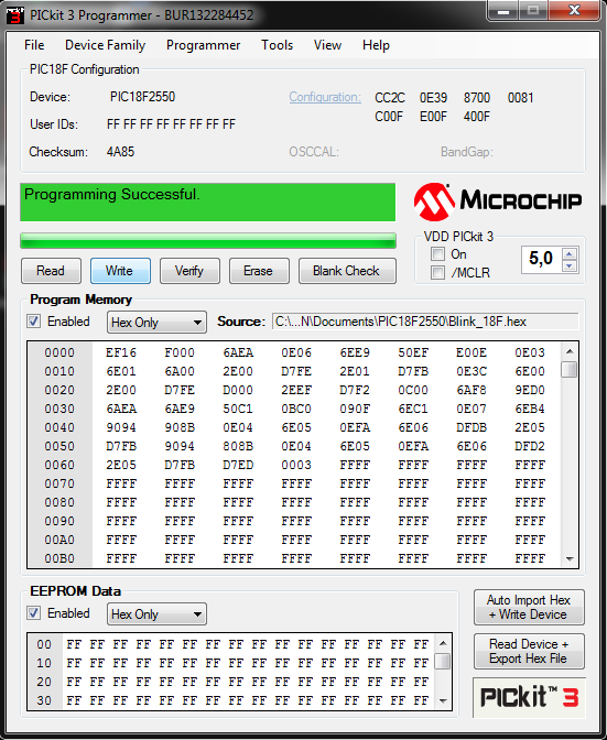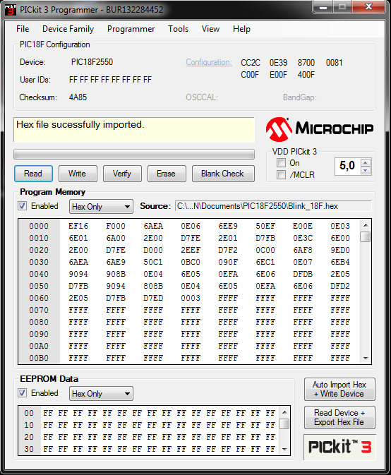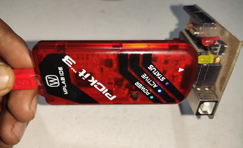 I connect the PICKit 3 programmer from Microchip and install the PICKit 3 software to program the PIC18F2550: