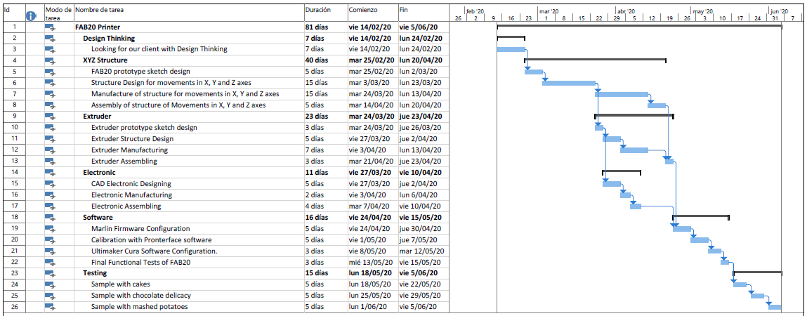 For the execution of this project, the following activities plan was prepared with the required times: