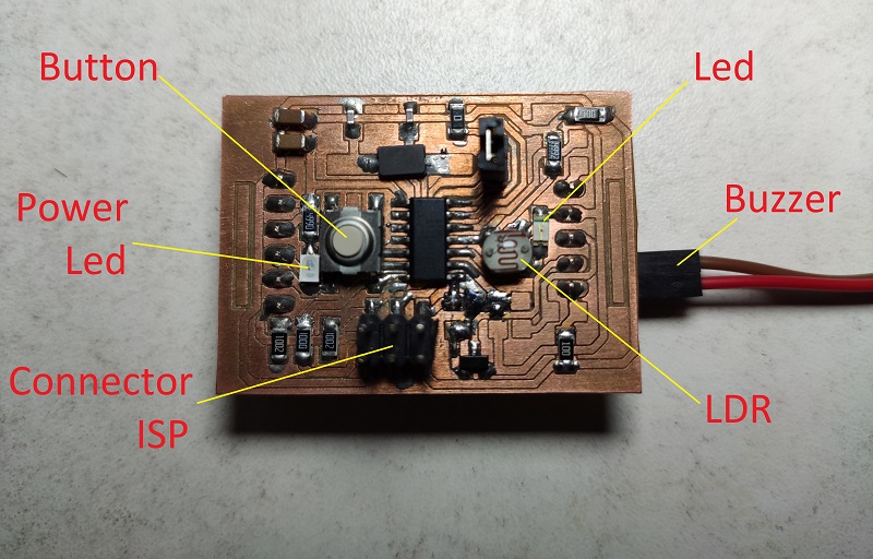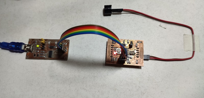 We can see connect to USBTinyISP this board was fabricated in WEEK 7: Electronics Production: