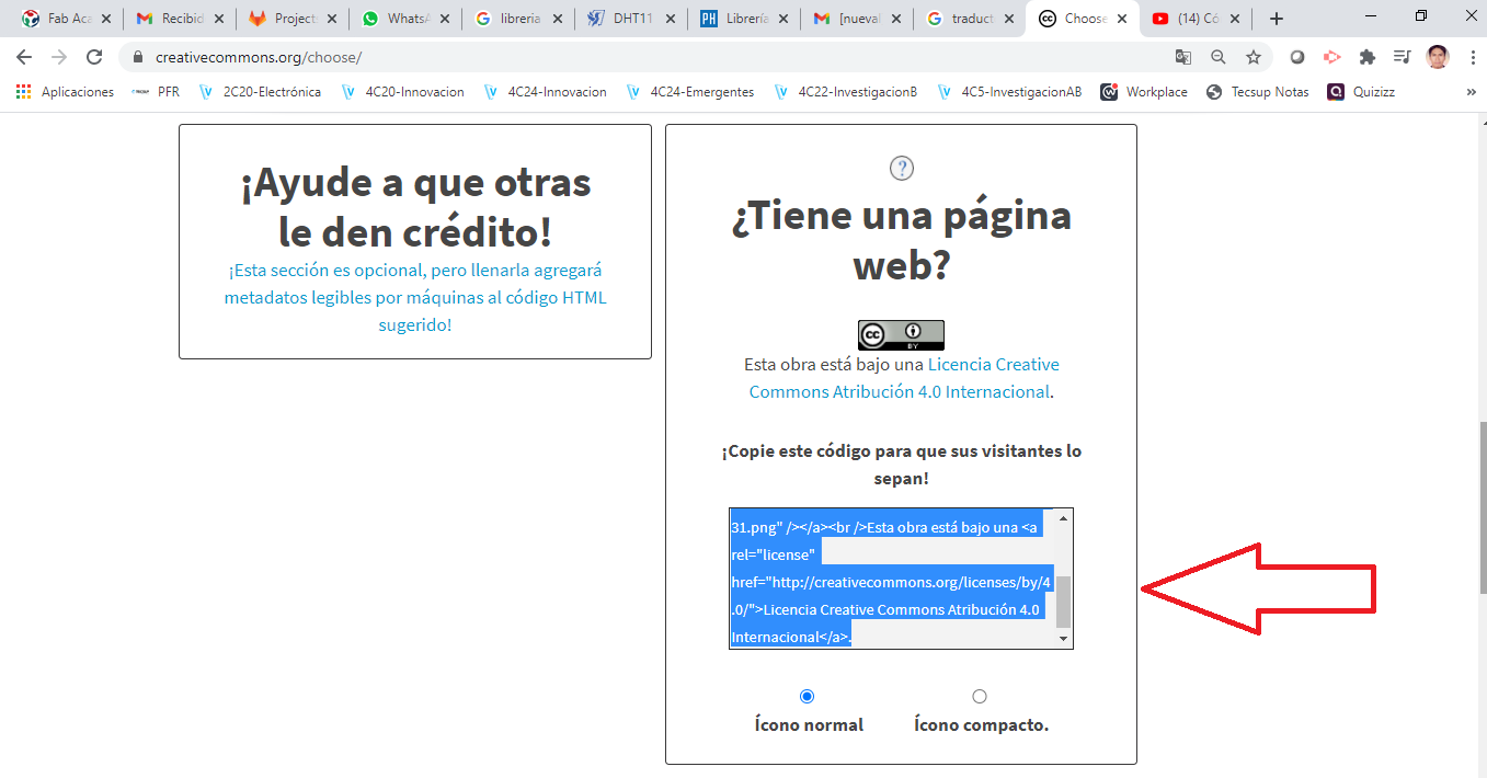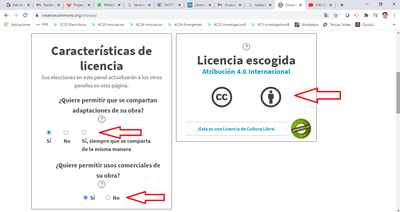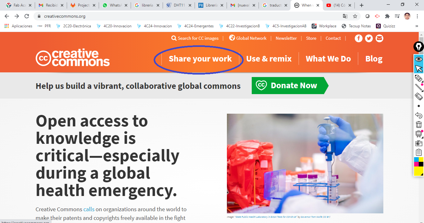 First we go to the page creativecommons.org and enter, we click on the Share your work tab