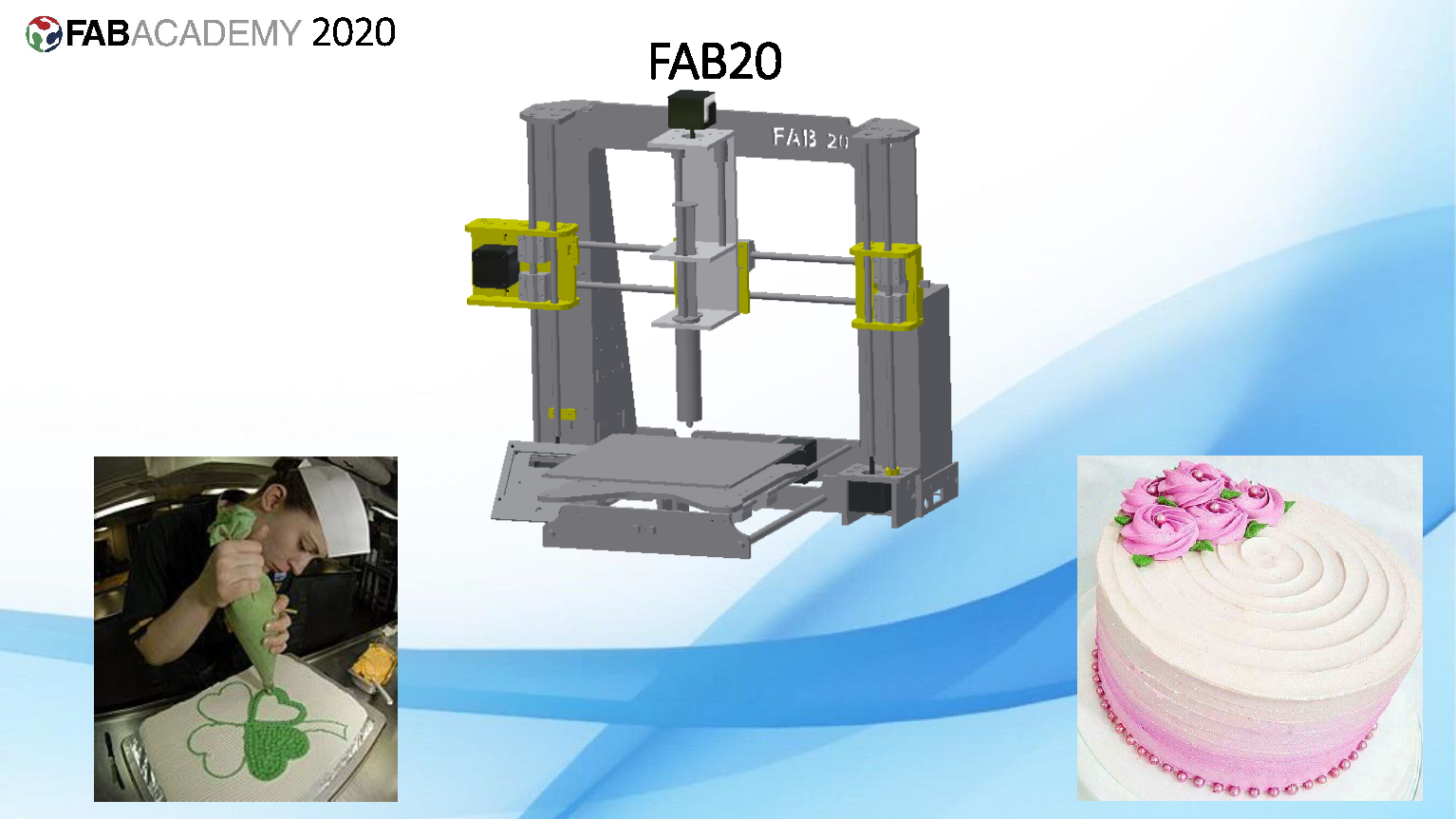 The traditional way of decorating cakes is for a person to decorate the cake with manual tools and material, in this project the 3D printer will decorate from a design in CAD software to the top of a cake: