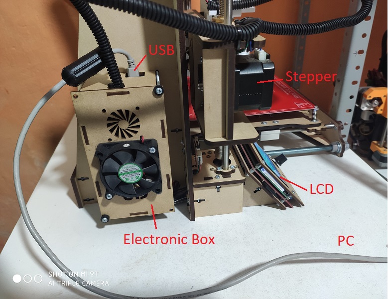 Here we show the final installation of the 3D printer